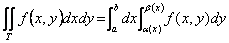 6) Formel der Verkleinerung für doppelte Integrale: Wenn f es auf einfachem eine T Herrschaft betreffend ist