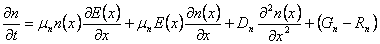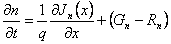 | Ströme in der Spleißstelle PN 1) Gleichung des Durchganges: Entwurf einer Gleichung, die Konto der gegenwärtigen Schuld hält, ist zu den Majorität Stützen, denen zu den Minoritätstützen, zwecks sie zu kennzeichnen ein Haben der breiten Region von Halbleiter dx und des Bereichs betrachtet zu, wird gehabt: