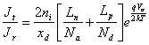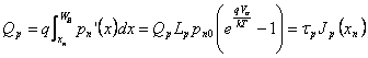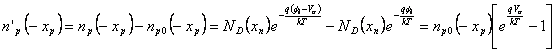 8) Dichte der Minoritätstützen zum Rand der leerenden Region: Wir möchten die Dichte der Minoritätstützen feststellen, die zu den Extremitäten der leerenden Region übermäßig sind, folglich, das wir zur Elektronkonzentration übermäßiges innen - x p, dasn ' p ist (-x P) undzur Abstand Konzentration interessiert sind, die für x nübermäßig ist, das p ' nist(xN), drücken sie wie Unterschied zwischen dem aufgeregten Wert und dem Wert zum Gleichgewicht aus und können leicht erreicht werden in, wieviel sind berühmt die Konzentration zum anderen Ende von verstärken Sie (…Gleichgestelltes zur Konzentration der Verunreinigungen im vrtù der des Näherungswerts Neutralität fast) und der mögliche Unterschied sie gleich Aufsteigen sie von Errichten-In.