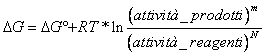 23) How much is worth the variation of free energy standard for one whichever reaction of ossidoriduzione: DG° = - n F DE° con DE° = E°CATODO - E°ANODO where who is the anode and who is the cathode gains from the observation which species is reduced in the back in which the reaction is written, such species will figure to the cathode. With constant F of equal Faraday to 96500 Coulomb obtains a DG° expressed in Joule/Size, in order to pass it to Kcal/Size is necessary to divide for 4184.