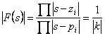 13) Points of the place of the roots correspondents to k = ±¥ : They are the zeroes of the F(s) in fact from the condition