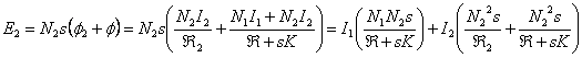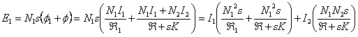 17) associated magnetic Circuit to a transformer: It is constituted from 3 meshes, one that the magnetomotrice force contains on the head physician and the relative reluctance to the flow dispersed in air from the head physician, one who contains the magnetomotrice force on secondary and the relative reluctance to the flow dispersed in air from the secondary one, and the mesh centers them that beyond to the relative reluctance to the nucleus it introduces relative a K inductance to the currents of Foucault, let alone the two magnetomotrici forces with towards the Concorde, the equations are: