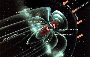 7) Fasce di Van Allen : Sono delle zone in cui le radiazioni che provengono dal Sole vengono intrappolate, ciò è dovuto al campo magnetico terrestre il quale è forte in vicinanza della Terra e quindi rallenta le particelle.