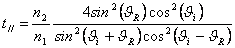 13) Relaziones de Fresnel para la polarizacin paralela al plan de la incidencia :