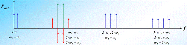 Vengono inviati in ingresso all'amplificatore non lineare due toni a frequenze spaziate di circa 20MHz tra loro su di una banda di circa 8GHz. Nel caso che la caratteristica dell'amplificatore sia descritta dalla  ciò che si ottiene è uno spettro molto complesso, tuttavia molte delle componenti possono essere facilmente eliminate mediante filtraggio, vi sono però dei termini che sono troppo vicini ai toni utili o addirittura alla stessa frequenza e pertanto possono essere eliminati o ridotti unicamente mediante l'utilizzo di un predistorsore, in particolare essi sono: