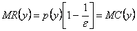 cela dans la vérité c'est la même relation valide pour une entreprise concurrentielle pour laquelle mais la courbe de question est plat et donc à l'élasticité infinie de laquelle elle suit ces MR(y) = p(y) qui est que le revenu margina est égal au prix. Vous vous notez cela pour une entreprise monopolistique à la place l'élasticité qu'elle n'est pas infinie.