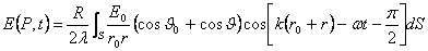 26) théorème de Kirchoff : La valeur et derrière le temps t dans externe le point de P à une écluse contenante extérieure la source de la vague est exprimée en termes de valeur qu'et lui a eue sur la surface dans un temps précédent.