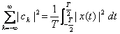 3) théorème de Parseval : Pour l'énergie d'elle les marque périodiques dans une période de T, celle est pour sa puissance moyenne qu'elle vaut la peine l'égalité