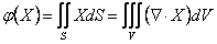 5) théorème de la divergence : L'écoulement du porteur X une écluses extérieures de S est égal à la divergence calculée de X sur le volume joint de S :