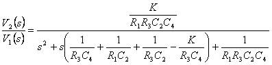 Pour un tel contour quelques critères de plan sont suivants : a) est R1 = R3= R et également 2C = C4 = C obtient b) est K=1 c) est K=2, C2 = C4 = C, obtient Tous et les 3 plans les donnent à endroit au proporziona de sensibilité directement à Q qu'il est délétère quand de meilleurs filtres procurables à Q élevé sont voulus pour être réalisés à la place en utilisant les rapports 1:10 que 1:1 entre R1 et R3 ou 2C et C4 .