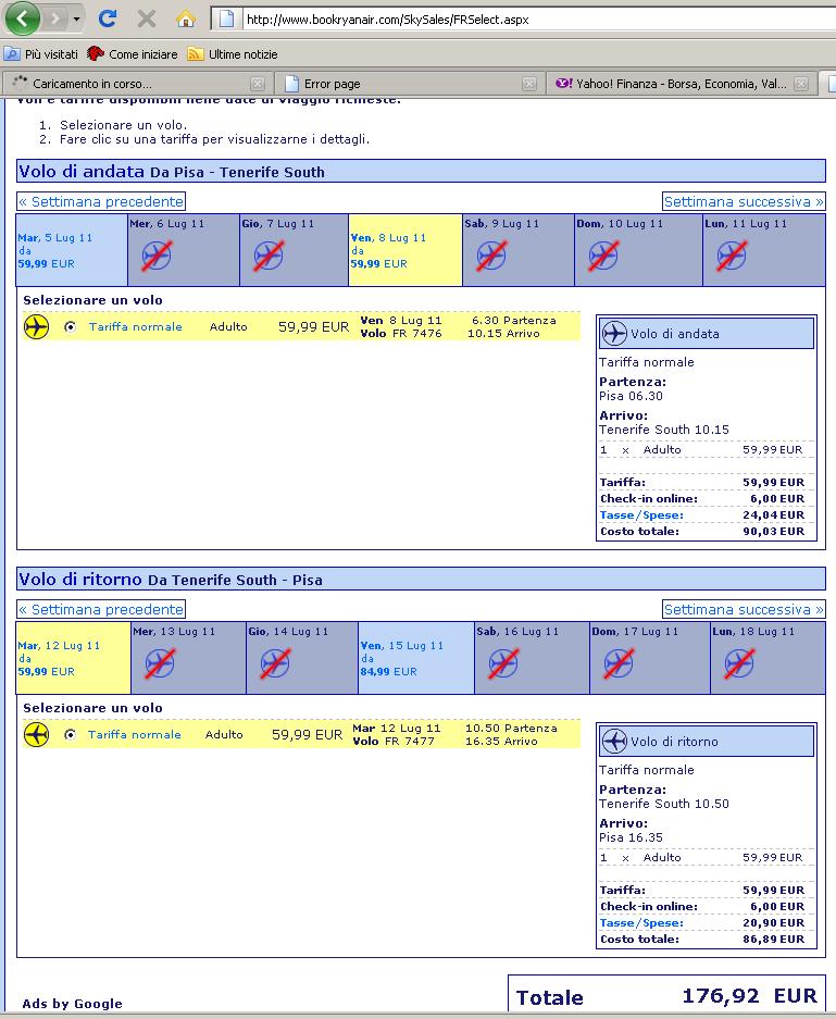 NON FATE TROPPE PROVE !!! ... Secondo me quelli della Ryan tengono traccia delle richieste e muovono le tariffe!!! Basso profilo ... si va per prenotare!
