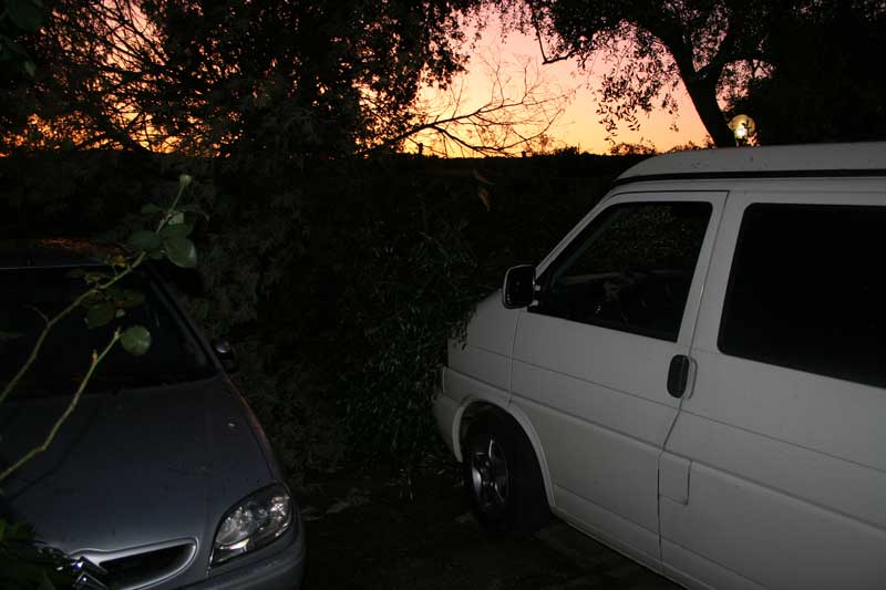 l'ultima ora l'ho passata a tagliare i rami con la sega. sembrerebbe integro... domani con la luce vedremo. mi rode che non posso uscire ne col westfalia ne con la polo domani mattina. rimandata la surfata all'alba.