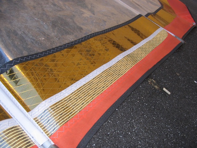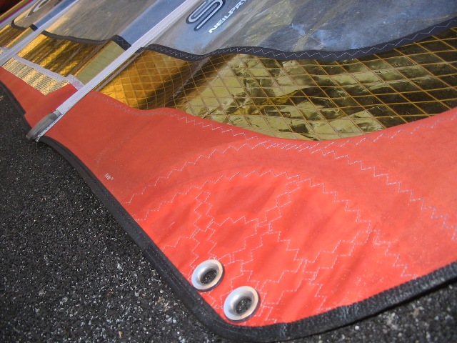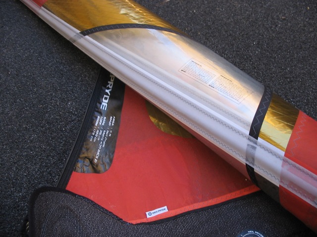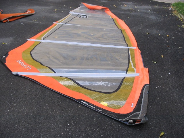 Ma possibile che uno dopo tanti anni che fa windsurf non sà se cià la prolunga da 30cm o da 40cm ?? Insomma sono andato col dubbio all'acquisto ed ancora ce l'ho sto dubbio, sospetto vivamente che sia da 30cm. A parte questo la vela era in buone condizioni generali ma con alcune imperfezioni locali, nella fattispecie due bozzi ciascuno del diametro di almeno un cm nel monofilm, mi ha detto dovuti al trapezio, li ha ben impecettati con dello scotch trasparente, come pure una bella riga nel monofilm, circa 4 cm impecettati per sicurezza.
