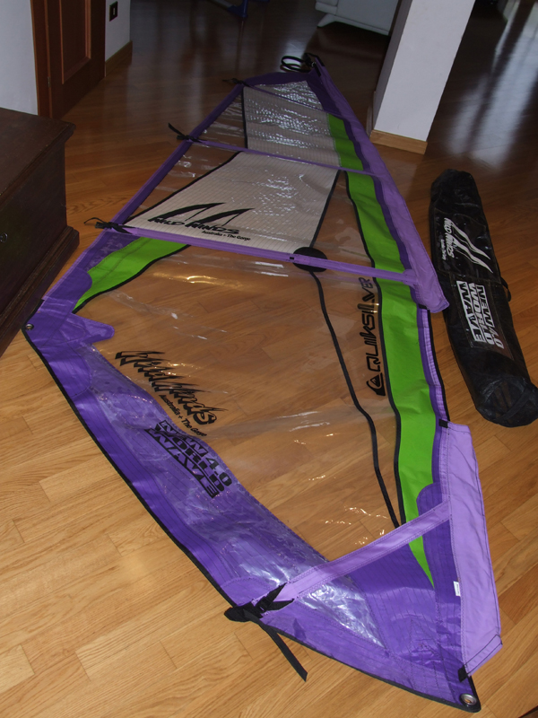 Sottopongo al giudizio della corte questa 4mq , è del 2001 ed il prezzo è davvero basso, 40 euro, il suo scopo dovrebbe essere però di coprire il range al di sotto della 4,9mq che è attualmente la mia vela più piccola.