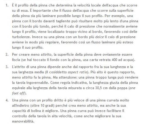 pinna più corta = maggiore manovrabilità (... quindi pinne corte per i freestyle) pinna più lunga = plana prima Pinna più larga = velocità minore