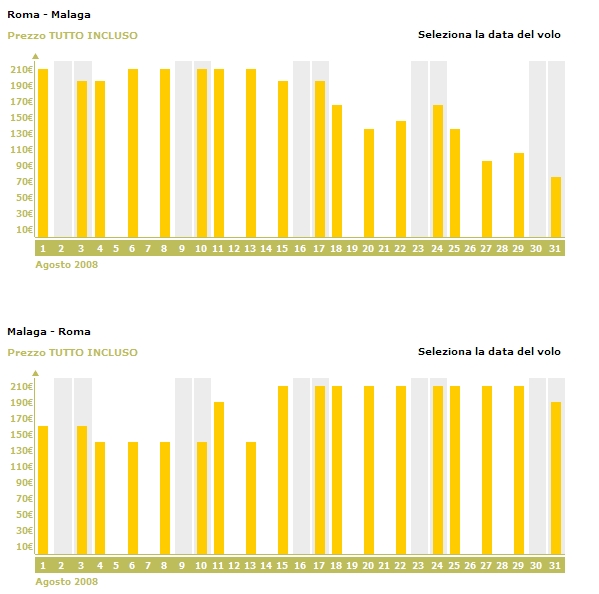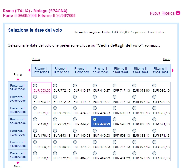 | domattina sento serfer che sinora aveva individuato l'aereo più economico, cerchiamo di prenotare per domani, oppure mo me metto a fa delle prove io e vedemo se lo trovo a 100 euro A/R |