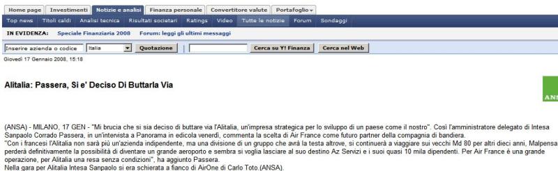 E me dispiace che c'è in mezzo pure Colaninno ma del resto è uomo d'affari, e l'Alitalia così come la stanno vendendo è un affare.