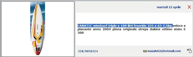 accattala di corsa antò! quel giorno a campo mi ci sono trovato da paura - è una tavola che plana prestissimo e gira benissimo - unico neo è che è un pochino fragile  |