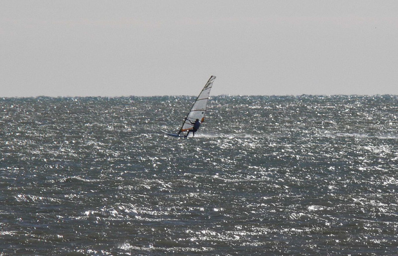 Giunti sullo spot verso le 12.30 notiamo un vento non eccezionale (vicino riva si fatica a partire dall'acqua) ci diranno poi che la caratteristica dello spot è che bisogna spingersi a largo per trovare vento sostenuto... comunque dei carabinieri nessuna traccia e i windsurf in acqua scorrazzano tranquillamente (mah!)