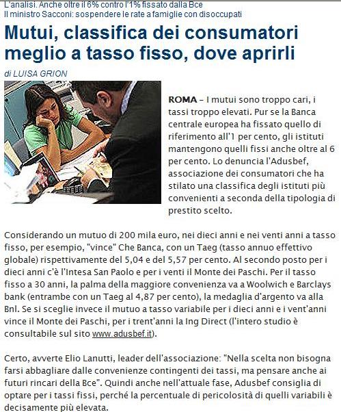 Mi avvertite se in questi giorni vi passa davanti agli occhi qualche offerta di mutui a tassi fissi che vi sembra vantaggiosa ??
