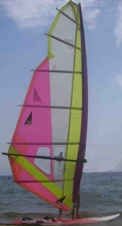 Il tipo fa il sostenuto, vuole 1 milione di lire mentre io son disposto a dargliene al più 800.000, inizia un lungo tira e molla, alla fine cede, mi dà il gioiello e mi ci affianca il rig a mia scelta tra le cose che ha a disposizione nel suo garage, son tante ma io non ho le minime cognizioni ed allora scelgo un albero scomponibile e pesantissimo, e lo abbino ad una vela 5,4mq della ART, col tempo scoprirò che la casa non è poi male, solo che io ho scelto il modello in tela perchè non mi andava di aver troppa cura del monofilm, il risultato è un rig pesantissimo.