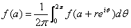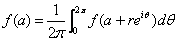 38) Teorema del valor medio : Sia f olomorfa nel dominio A Þ il valore di f in un punto di A è uguale alla media dei valori di f su una qualunque circonferenza centrata in quel punto e contenuta, insieme al suo interno, in A : Si dimostra a partire dalla formula di Cauchy