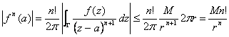 46) Disuguaglianza di Cauchy : Se f(z) è analitica dentro e lungo il cerchio C di raggio r e centro in z = a, Si parte dalla formula integrale della derivata di Cauchy