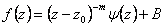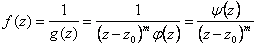 52) Polo : Se una funzione ad un sol valore ha un polo in z = a, Þ 53) Se il punto z0 è un polo della funzione analitica f(z) Þ per z®z0 il modulo della funzione f(z) cresce infinitamente, indipendentemente dal modo in cui il punto z tende al punto z0 : Basta scrivere lo sviluppo di Laurent a partire dal termine –m supponendo appunto un polo di ordine m, raccogliendo nella parte principale (z-z0)-m si ha 54) Se una funzione f(z), analitica in un intorno di un suo punto singolare isolato z0 cresce infinitamente in modulo indipendentemente dal modo in cui il punto z tende al punto z0 Þ il punto z0 è un polo della funzione f(z) : Si considera la funzione
