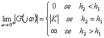12) Criteri per la costruzione del diagramma di Nyquist: È bene tenere a mente gli andamenti dei diagrammi di Bode di modulo e fase, in particolare per una costruzione approssimata è sufficiente conoscere modulo e fase sia per w®0 che per w®¥. In particolare per w®0 è importante la differenza tra il numero di poli h2 ed il numero di zeri h1 nell'origine, si ha :