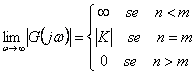 mentre per w®¥ è importante la differenza tra il numero di poli n ed il numero di zeri m , si ha :