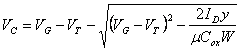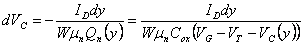 3) Analisi completa della IDS con il controllo della carica : In questo caso non si trascura la caduta di potenziale che si ha lungo il canale, tuttavia per semplificare la trattazione si utilizza la approssimazione di gradual-channel secondo la quale i campi nella direzione y (…dal Drain al Source) sono infinitesimi rispetto a quelli che si hanno nella direzione x (…dal gate al bulk) inoltre si assume che la lunghezza del canale L sia maggiore della lunghezza L´ della regione di svuotamento al Drain. La caduta di potenziale all´interno di un tratto del canale avente resistenza R è