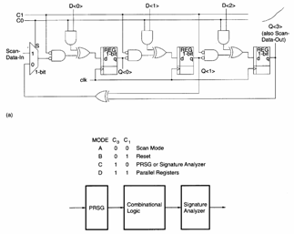 Si tratta della unione della Signature Analysis con le tecniche di scansione in particolare sulla base di 2 ingressi si può decidere la modalità operativa di un gruppo di registri. |