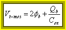 3) Tensione di soglia VT : La tensione di soglia VT è dovuta al fatto che occorre una tensione leggermente positiva per allontanare i portatori maggioritari e richiamare i minoritari, essa vale