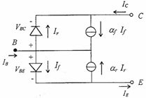 7) Diodo : È una giunzione pn per la quale l´espressione della corrente è 8) BJT : È un sandwich npn o pnp per il quale si ha il seguente modello : a) Interdizione : entrambe le giunzioni sono polarizzate inversamente, ne deriva che non scorre corrente tra emettitore e collettore. b) Attiva : la giunzione base-emettitore è polarizzata direttamente quindi ai suoi capi si hanno circa 0,7V mentre la giunzione base-collettore è polarizzata inversamente, in questo caso IC = bIB . c) Saturazione : entrambe le giunzioni sono polarizzate direttamente, si ha che ai capi della giunzione base-emettitore ci sono circa 0,7V mentre tra collettore ed emettitore ci sono 0,2V.
