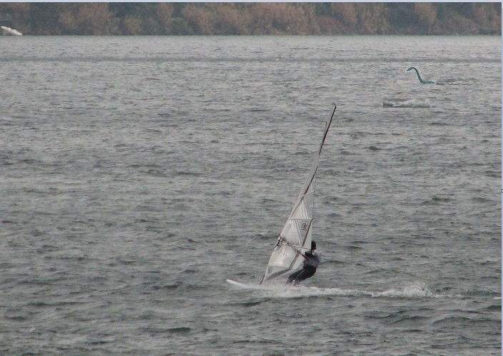 Uscita N° : 1 Data : 040114 Spot : Albano Pirata Wind : SSE 18-30kn Temp air : 18° Sail : Challenger 5.0 Board : Drops 125 l xt Note : Arrivo alle 10:30 .. cerco di capire quello che non si capisce e monto quello che non volevo montare . Infatti a detta di molti alle rcoccette sparava da 4.8 .. Entro in acqua con la 5.0 ed è subito forte ma con groppi piovosi all'orizzonte che coprivano tutte le creste del vulcano non pormettevano nulla di buono . Dopo 1 ora scarsa arriva la pioggia nuovole bassissime coprono il lago , facendolo diventare un film di John Carpenter . Lago misterioso e mostruoso con le sue strane creature (vedi foto)