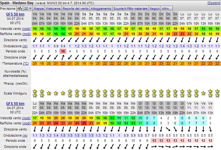 | Ieri ho messo l'app di windfinder e settato El Medano come spot, per una settimana almeno ci sono 30 nodi di media, buono anzi bueno! |