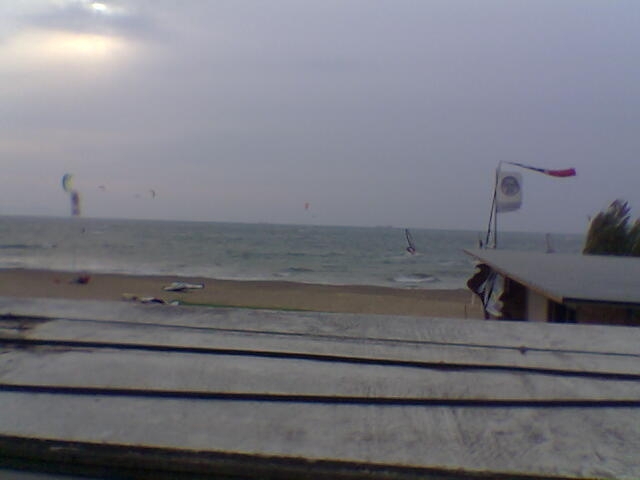 Da annoverare che il vento era da Est side-on (mi pare, SerFer correggimi se sbaglio), con acqua piatta e chop irregolare che rendeva difficile saltare, nonostante tutto qualche salto l'ho fatto ed anche un saltone iperadrenalinico.
