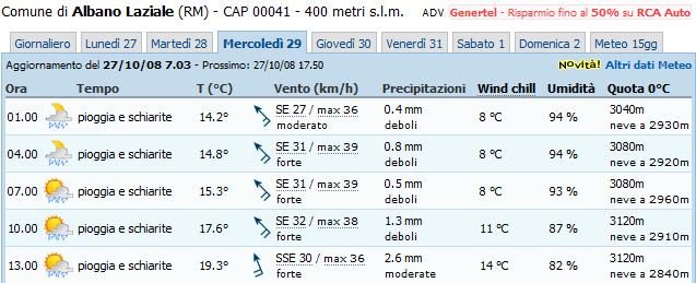 vedo meglio mercoledì, se non altro per il rischio diluvio che domani sembra essere certo. questa è la situazione per albano ma si potrebbe tentare anche S.agostino tanto il tempo per arrivare in ufficio sarebbe lo stesso per me dato il traffico del mattino.