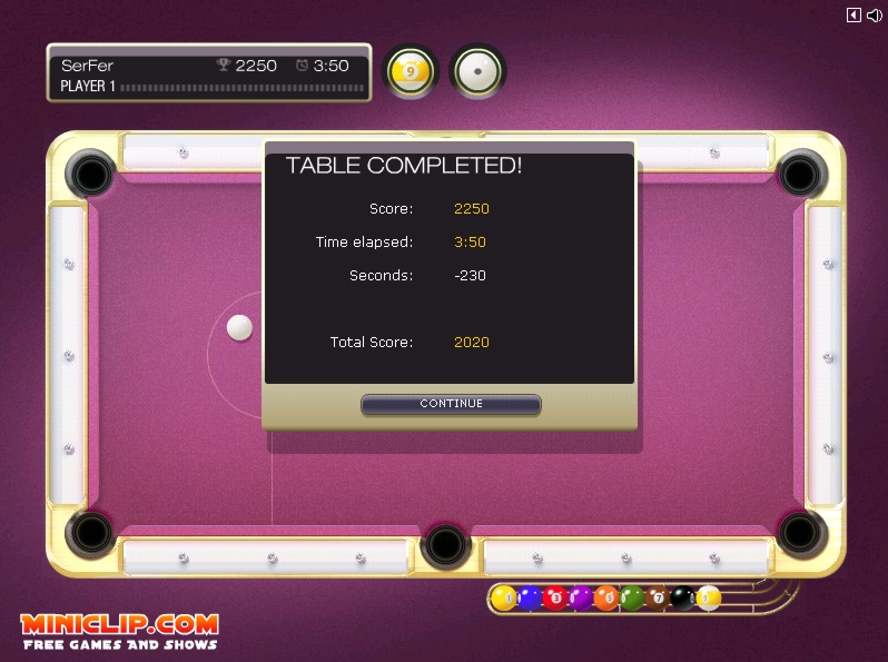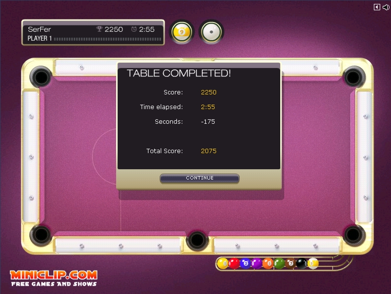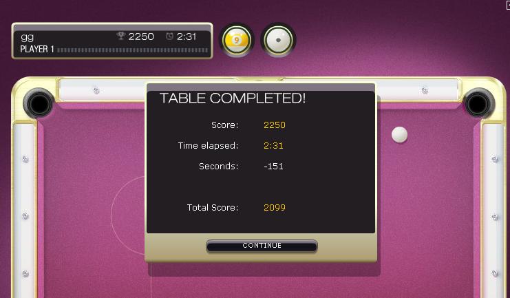 Lo scopo è di mandare le palle in buca nell'ordine da 1 a 9 nel minor tempo possibile ed accumulando punti, possibilità di dare gli effetti !!!