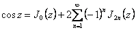 13) Sviluppo delle funzioni trigonometriche in serie di funzioni di Bessel : Si ottiene ponendo nella funzione generatrice Estrinsecando si ha Da cui eguagliando i termini reali ed i termini immaginari e ponendo j = p/2 si ottengono i 2 seguenti sviluppi :
