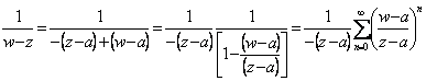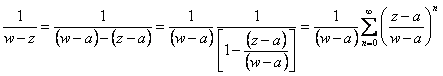 44) Teorema di Taylor : Sia f è analitica all´interno del cerchio C con centro in a Þ la serie di Taylor di f nel punto a : Sia z un punto interno a C e si costruisca un cerchio C1 il quale racchiuda z ma sia contenuto in C ed entrambe i cerchi siano centrati in a . Il valore di f(z) è quindi dato dalla formula integrale di Cauchy