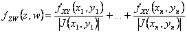 21) Trasformazione di una coppia di variabili aleatorie ; dimostrare il teorema fondamentale e descrivere l´uso della variabile ausiliaria per ottenere la funzione di densità di una funzione di 2 variabili aleatorie : Se si hanno 2 funzioni di variabili aleatorie Z e W tali che Z = f(X,Y) e W = g(X,Y) allora il teorema fondamentale descrive come ottenere per mezzo del Jacobiano la funzione di densità di probabilità congiunta. Si ha