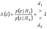 33) Decisione binaria con singola osservazione : concetti generali e test di Neyman - Pearson, quest´ultimo con relativa dimostrazione : Si ha una decisione binaria quando nello spazio dei segnali S ci sono 2 segnali, ad ognuno di essi è associata una delle 2 partizioni dello spazio delle osservazioni Z e deve esser presa una delle 2 decisioni d0 o d1 . L´errore di 1° tipo è la probabilità che il segnale fosse S0 ma venga erroneamente presa la decisione d1 , è indicato con a ed è detto livello di significatività del test. L´errore di 2° tipo è la probabilità che il segnale fosse S1 ma venga erroneamente presa la decisione d0 , è indicata con b ed il suo inverso P = 1 - b è detta potenza del test. 34) Teoria della decisione e criterio di Neyman - Pearson : Si propone di ripartire lo spazio delle osservazioni in modo da associarne gli elementi allo spazio delle decisioni. Il criterio di Neyman Pearson conduce alla individuazione di una regola di decisione che minimizza b avendo fissato a. In sostanza si applica il metodo dei moltiplicatori di Lagrange cercando tra tutte le regioni per le quali il livello di significatività del test è quello fissato a0 , quella che massimizza la potenza del test b . Si trova che il rapporto di verosimiglianza è maggiore del moltiplicatore l si sceglie d1 altrimenti si sceglie d0.