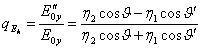 Supponiamo l'asse x orizzontale, l'asse y uscente dal foglio e l'asse z diretto verso il basso, pertanto supponendo che l'onda incidente appartenga al piano xz si ha che il vettore b ha componente sia lungo x che lungo z, per z=0 l'uguaglianza tra le componenti tangenziali di E porta alla relazione