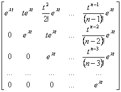 8) Matrice di transizione dello stato nel caso di ingresso nullo : È una matrice che in assenza di forzamento consente di passare dal vettore di stato al tempo 0 al vettore di stato al tempo t ossia