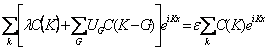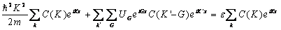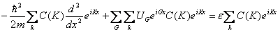 2) Equazione d´onda per un elettrone in un potenziale periodico : Consideriamo un reticolo lineare nel quale gli atomi siano distanziati di a tra di loro. Nella equazione di Schroedinger a) la serie di Fourier della y(x) sommata sui soli k consentiti dalle condizioni al contorno b) La serie di Fourier del potenziale periodico u(x) sommato sui vettori G del reticolo reciproco Ottenendo
