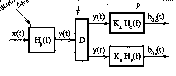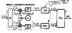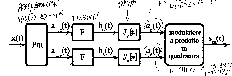 17) Preelaboratore analogico di modulazione armonica lineare : Il segnale d´ingresso x(t) viene inviato ad un elaboratore preliminare analogico con funzione di trasferimento Hp(f) , il segnale y(t) viene inviato uguale tramite un distributore a due blocchi che eseguono in maniera diversa tra loro l´elaborazione lineare con memoria.