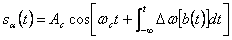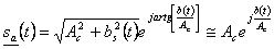 19) Modulazione di ampiezza istantanea : Ponendo bs(t) = 0 si ottiene il segnale modulato in ampiezza La modulazione si ottiene tramite un moltiplicatore a prodotto che fa sbattere il segnale d´ingresso b(t) con la portante in fase cc(t) mentre nel demodulatore il segnale modulato sa(t) batte con il doppio della portante in fase cc(t).