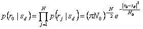 all´uscita del banco di correlatori si hanno le componenti rj del vettore osservabile r0 che per via del rumore non coincide con nessun vettore della costellazione , si ha infatti che la probabilità di ricevere rj una volta che sia stato emesso sd è  ed essendo le nj statisticamente indipendenti si ha .