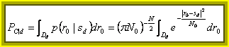 Ricordando che i criteri di decisione non fanno altro che associare ad ogni vettore della costellazione una regione di decisione, ne segue che la probabilità di corretta decisione condizionata al vettore emesso sd è l´integrale di  sulla regione Dd associata ad sd , si ha cioè  mentre la probabilità di corretta decisione è  e la probabilità di errore PE = 1-PC .  Infine la probabilità di errore Pe è la probabilità che vi sia un bit errato ed è funzione della codifica di modulazione utilizzata, ad esempio nel caso di modulazione antipodale  .